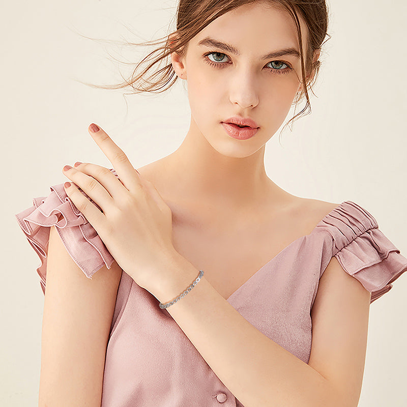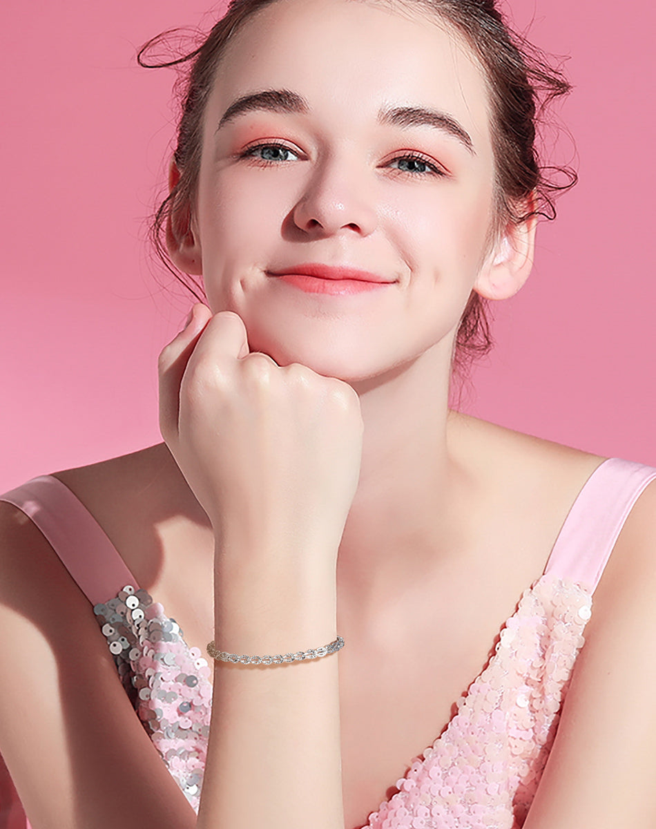 Bratara eleganta confectionata din argint sterling 925, cu un design sofisticat de franghie rasucita care capteaza lumina intr-un mod captivant. Inchiderea sigura tip lobster asigura confortul purtarii zilnice, iar sistemul ajustabil permite o potrivire perfecta pentru orice marime de incheietura. Piesa ideala pentru a completa orice tinuta, combinand craftsmanship de calitate cu versatilitate moderna.