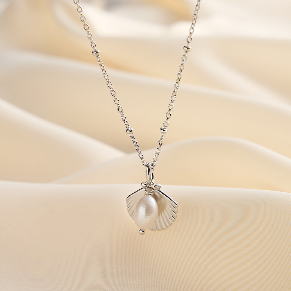 Colier argint 925, pandantiv scoică cu perlă, elegant, 46cm
