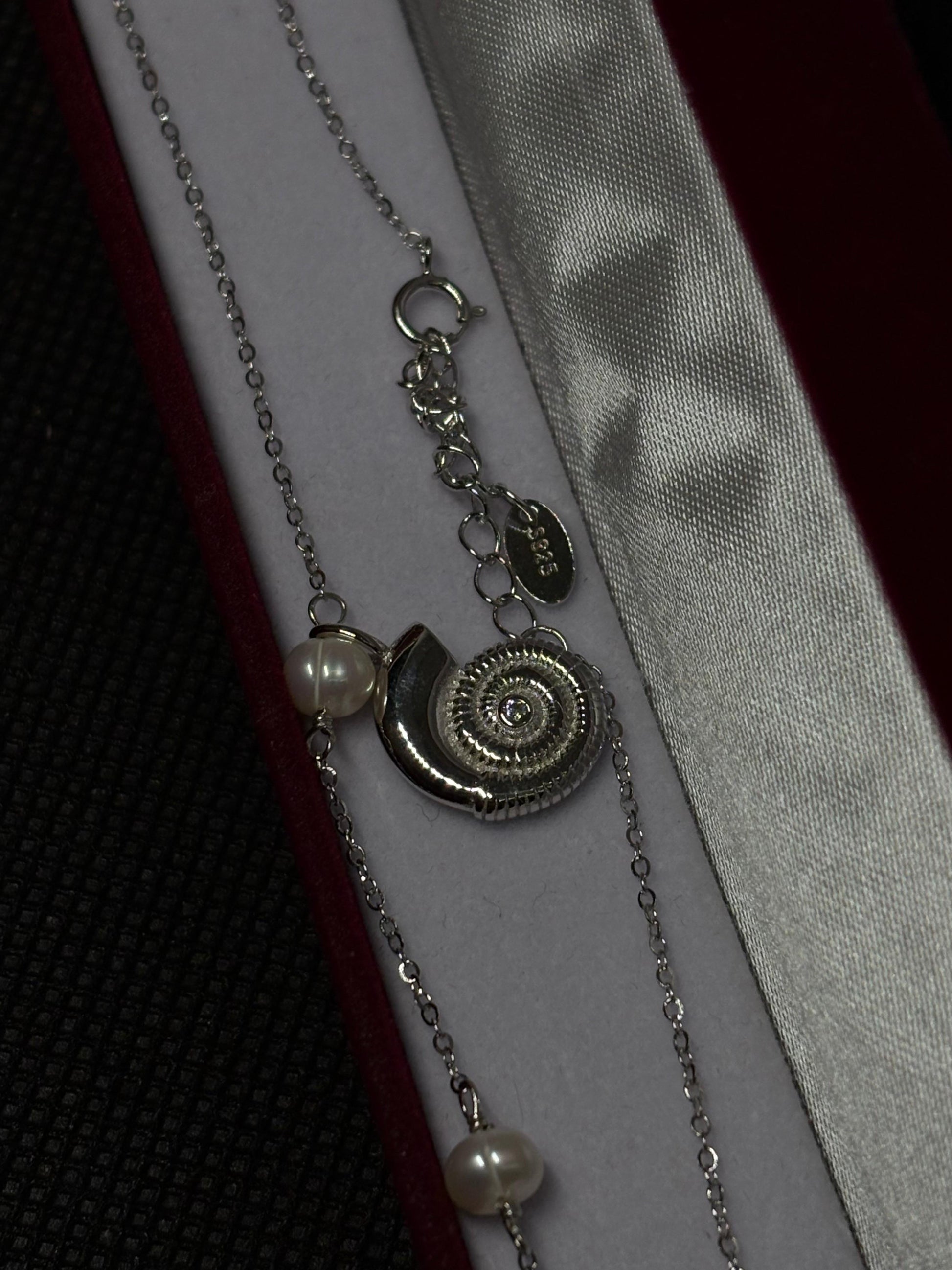 Colier elegant confecționat din argint sterling 925, prezentând un pandantiv Nautilus finisaj delicat, completat cu o piatră strălucitoare care captează lumina cu rafinament. Designul combină simbolismul naturii cu craftsmanship de calitate superioară, oferind o piesă versatilă potrivită atât pentru ocazii speciale, cât și pentru purtare zilnică. Finisajul argintului asigură durabilitate și ușurință în întreținere, iar detaliile sculptate evidențiază atenția la fiecare aspect al creației.