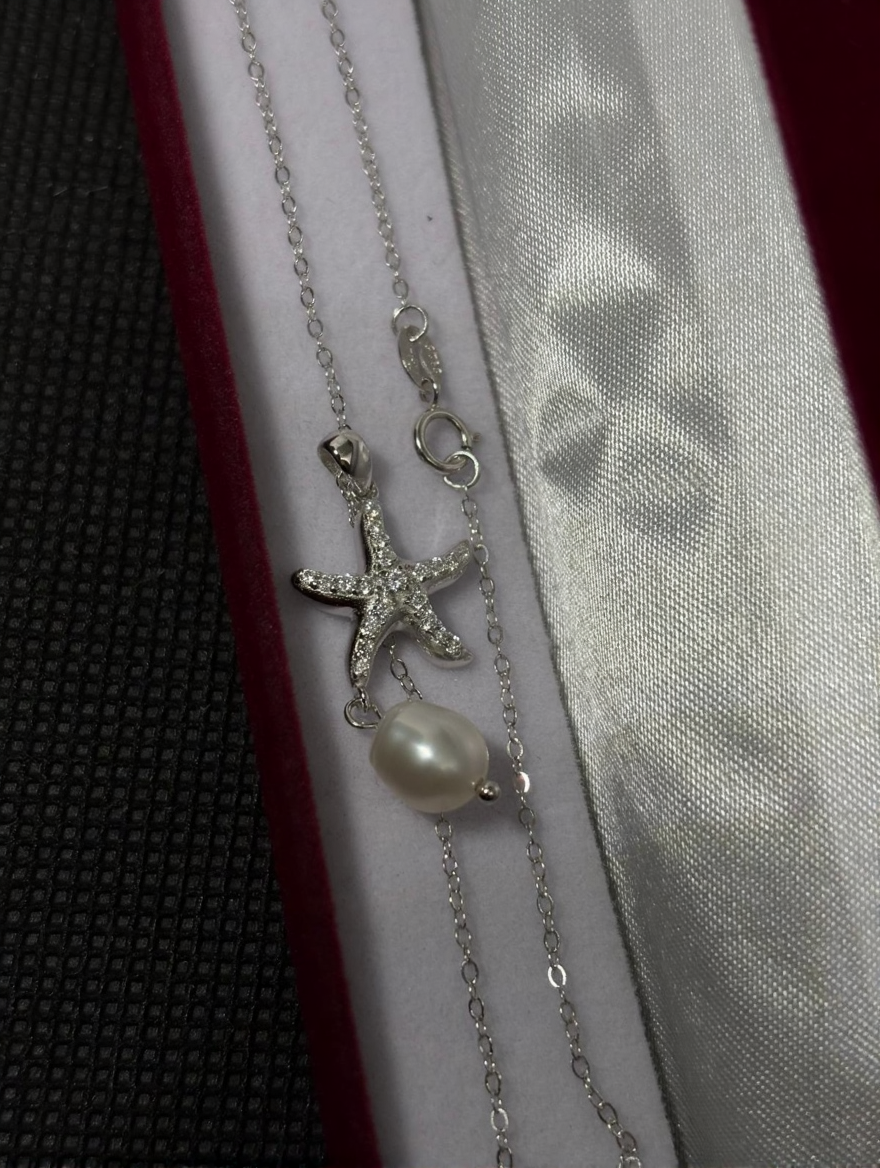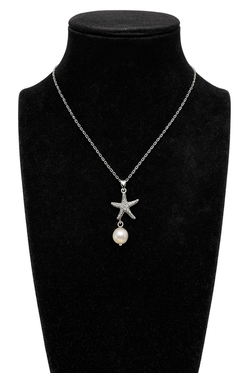 Colier din argint 925 cu pandantiv stea de mare si perla